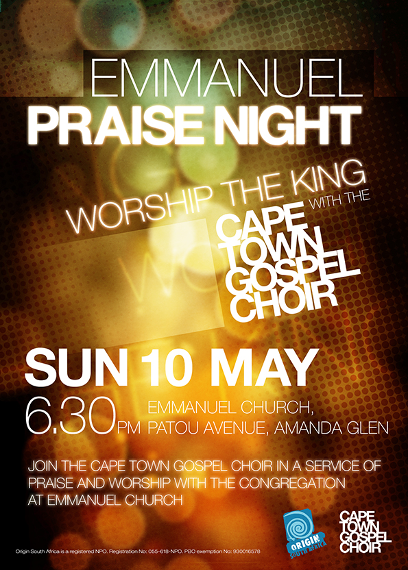 Join the Cape Town Gospel Choir for an 'unplugged' evening of worship both congregational and performance.