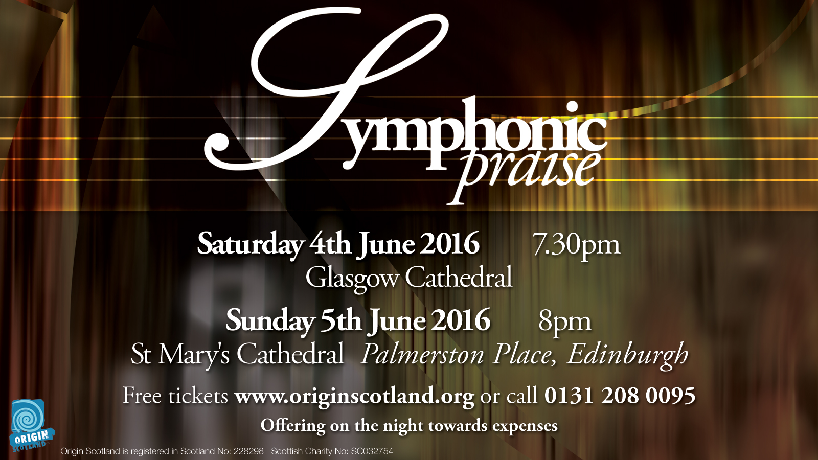 Origin Suid-Afrika is opgewonde om 'n tweede vertoning, met van die beste, Christelike gesange en liedere wat ooit geskryf is, aan te bied. Die unieke program strek oor die musikale eeue, wat kontemporêre liedere sal insluit. Die gehoor se betrekking in deelname en samesang, maak die aand enig in sy soort.