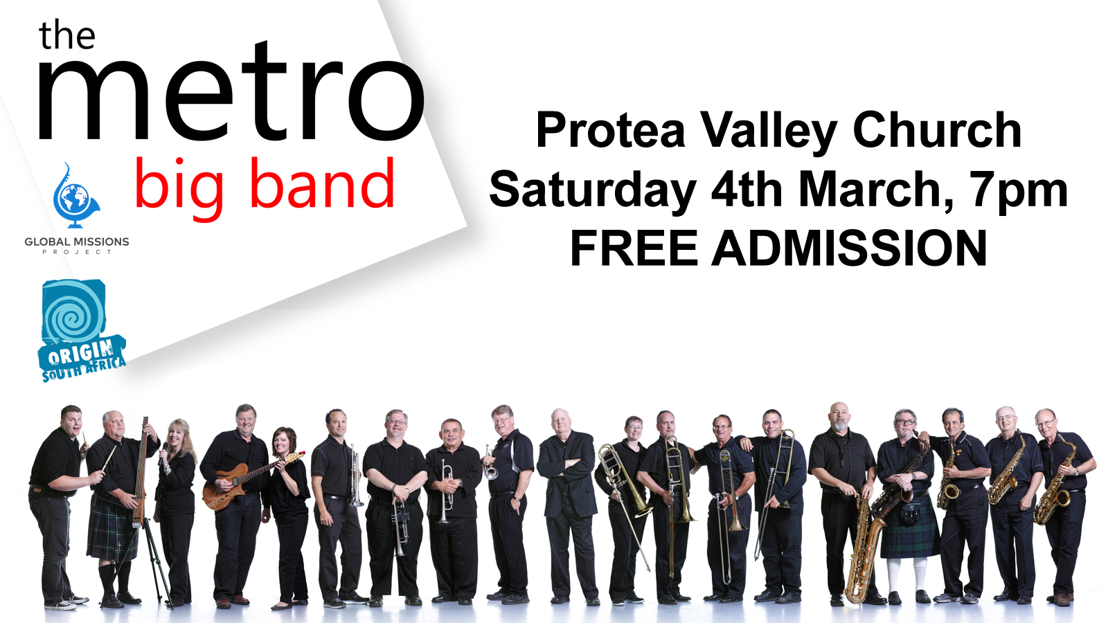 Join the Metro Big Band in an awesome concert of jazz and blues. Bring a friend to hear the music and testimony of the musicians.