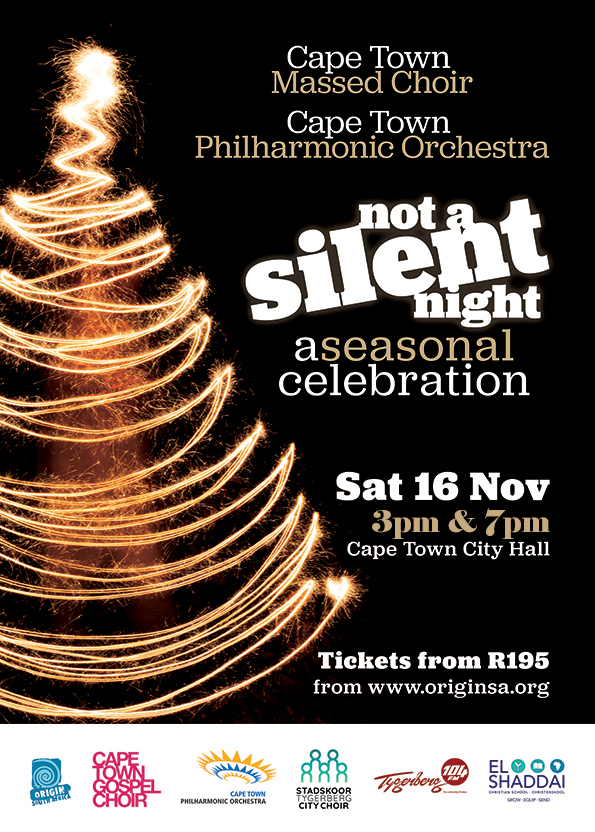 Origin South Africa, in partnership with Radio Tygerberg 104FM, presents the Cape Town Philharmonic Orchestra, Rouchelle Liedemann, The Cape Town Gospel Choir, The Tygerberg City Choir, El Shaddai Christian School Primary School choir, and others in an evening you won't forget, mixing traditional and contemporary along with your favourite Christmas carols.