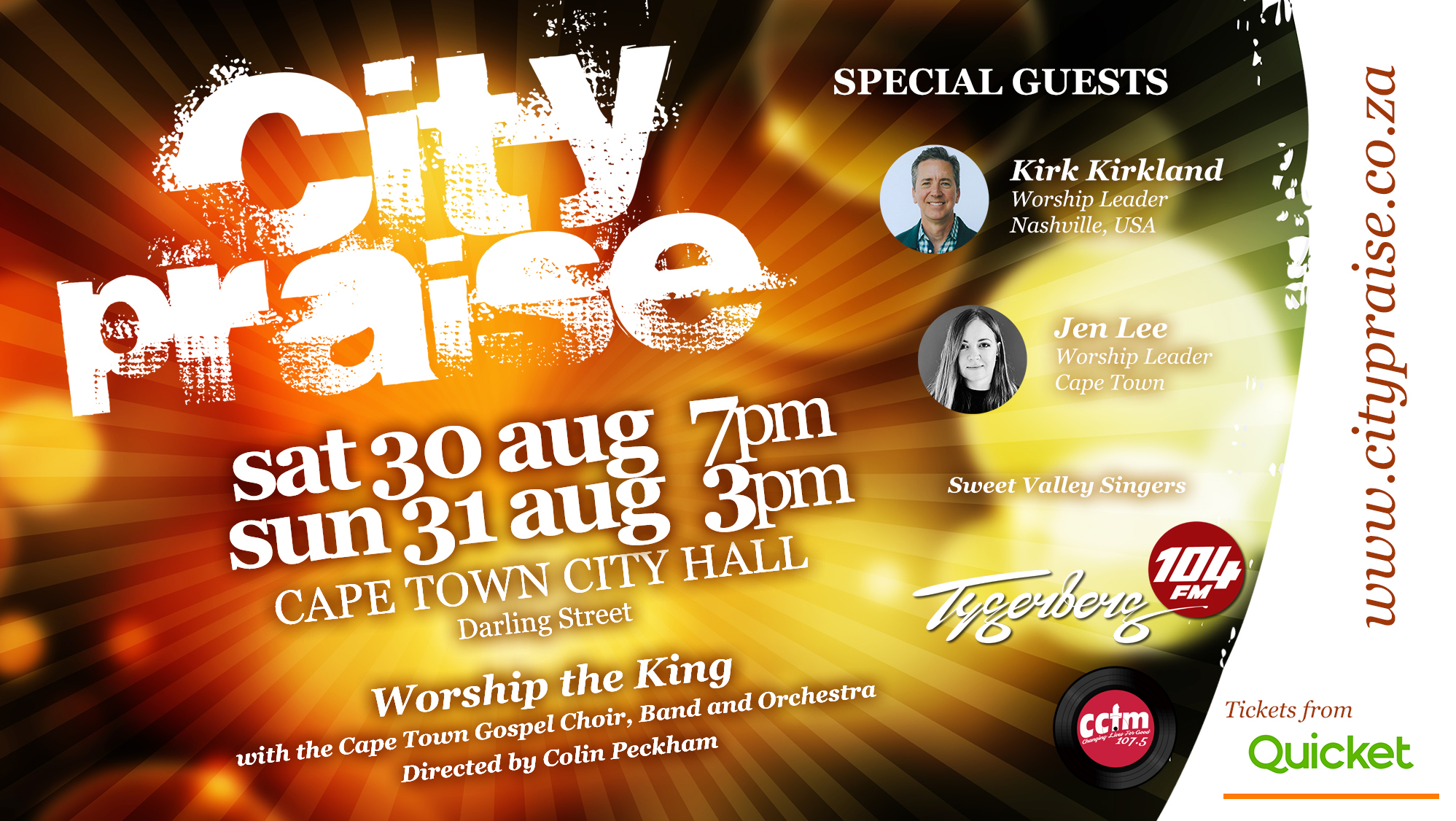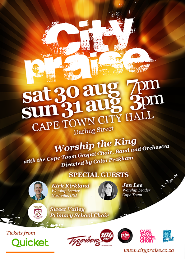 We will be joined by Kirk Kirkland (worship pastor at Judson Baptist Church, Nashville, Tennessee), Jen Lee (worship leader from Protea Valley Church, Cape Town), and the Sweet Valley Singers (from Sweet Valley Primary School).