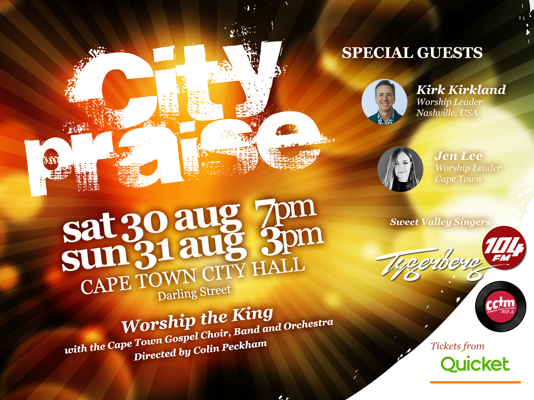Join us for an unforgettable evening of heartfelt worship featuring the Cape Town Gospel Choir, Band, Orchestra, and special guests in partnership with CCFM 107.5 and Radio Tygerberg 104FM.
